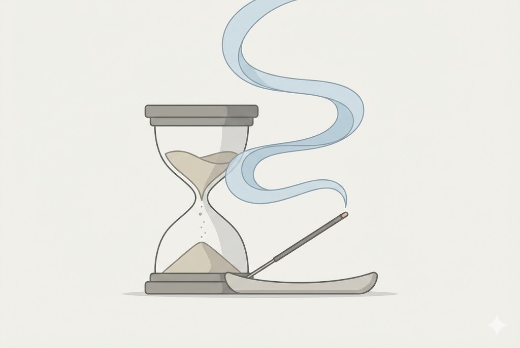 研究によると、香りの効果は焚き始めてから約3〜5分で脳に影響を与え始め、10〜15分でピークに達します。そのため、重要な作業を始める15分前にお香を焚き始めることで、作業開始時に最適な精神状態を作り出すことができます。