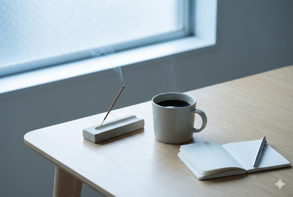 個人のデスクスペースでは、小型の香立てや電子香炉を使用し、控えめな量のお香を焚くことで、自分だけの集中空間を作り出すことができます。