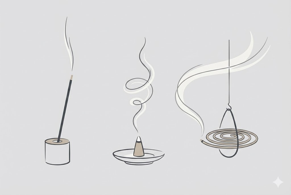 お香を始める前に、まず基本的な知識を身につけておくことが大切です。お香には大きく分けて「スティック香」「コーン香」「渦巻き香」の3種類があります。
