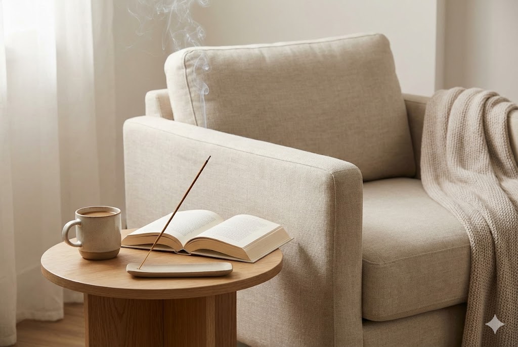 木系の香りやフローラル系の香りは、心を落ち着かせてくれます。就寝前には、安眠効果のある穏やかな香りを短時間だけ焚くことで、質の良い睡眠につながります。